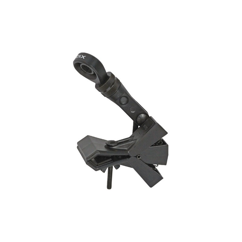 Clip a doppio snodo con ganasce extra larghe per batteria/percussioni. Include supporto con sospensione shock mount per microfoni MicroD e Micros.