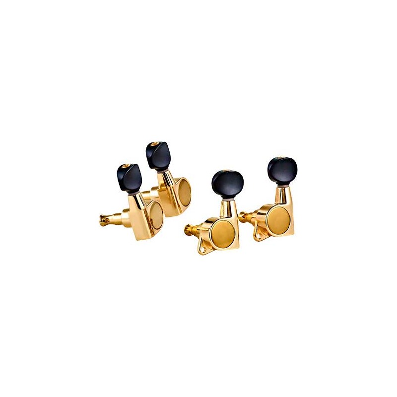 OTMUKDC-GO Meccaniche ukulele professionali con corpo in ghisa. Finitura dorata e pomelli neri.