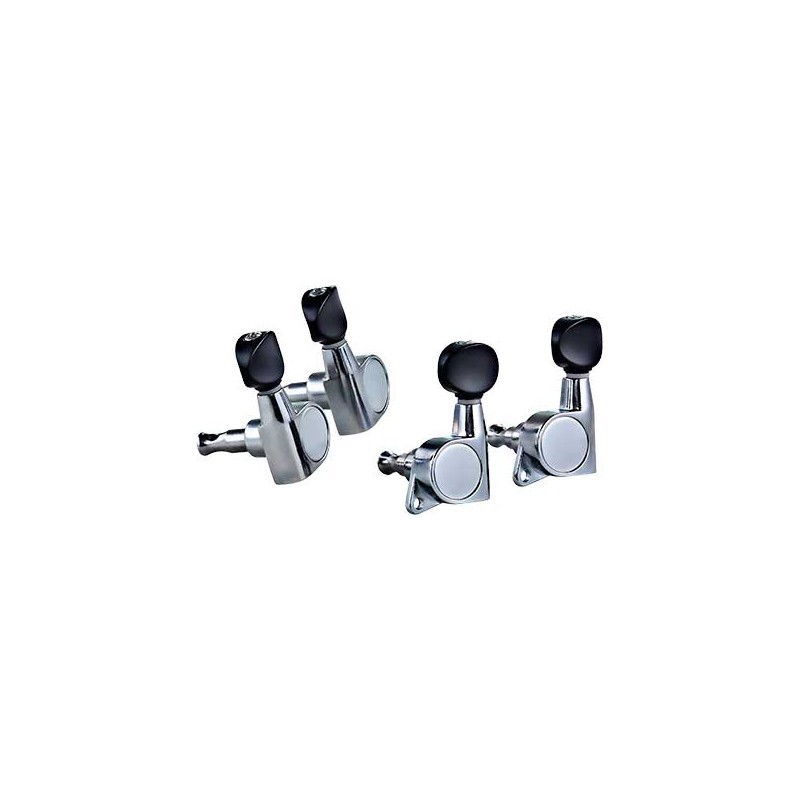 OTMUKSTD-CR Meccaniche da ukulele standard. Finitura cromata e pomelli neri.