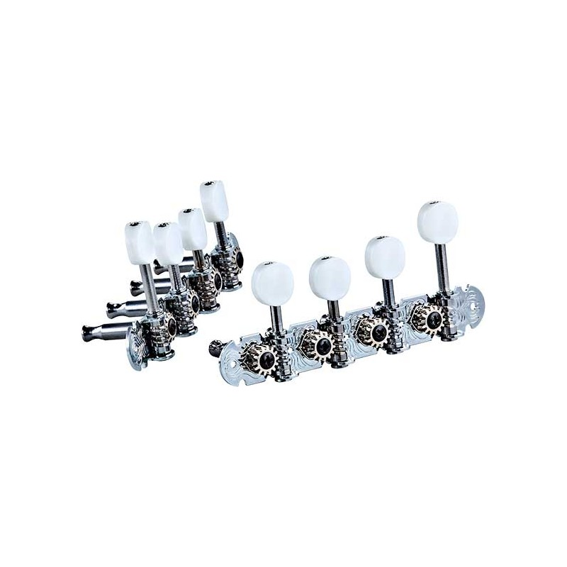 OTMMAPREM-CR Meccaniche Premium per mandolino tipo F. Finitura cromata con pulsante nero.