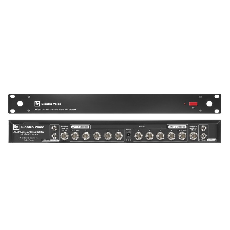 Distributore d'antenna attivo 2-in x 8-out. Distribuisce l'alimentazione CC per un massimo di 4 ricevitori. Distribuisce due antenne per un massimo di 4 ricevitori diversity. Uscita in cascata per collegare più...