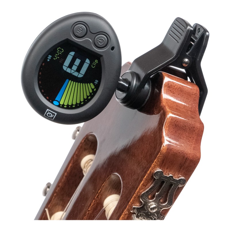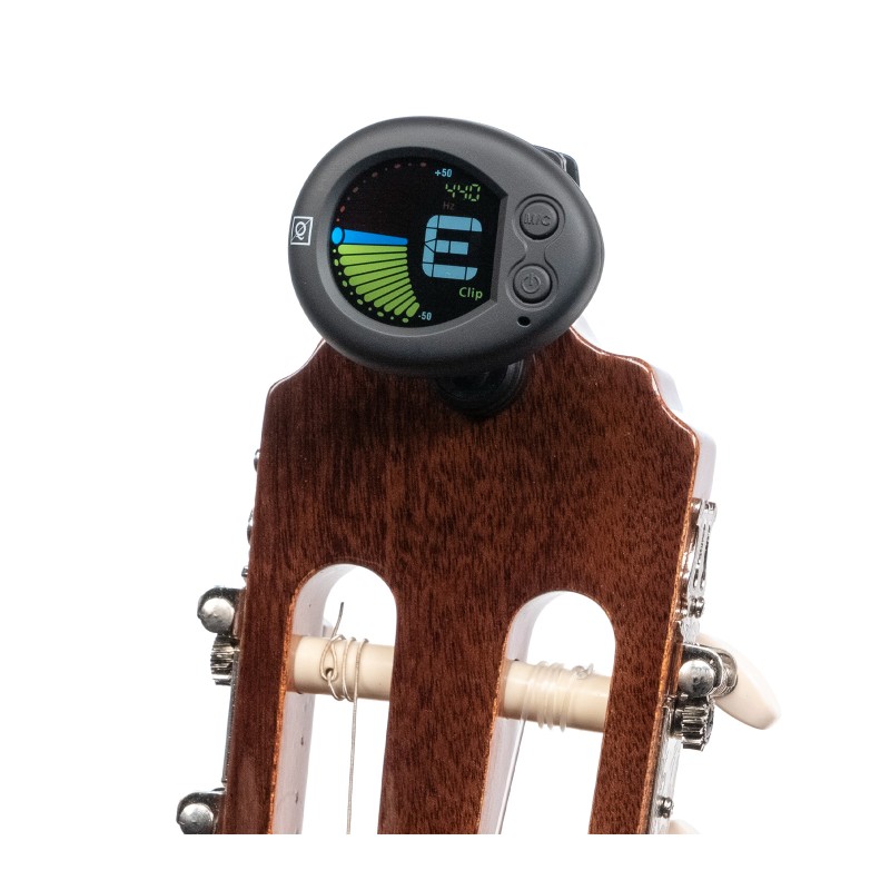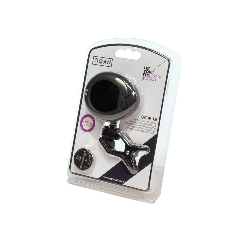 Accordatore metronomo QCLIP-TM. Modalità di accordatura: cromatica. Calibrazione A4: 410-490 Hz. Intervallo di tempo: 30-280 bpm. Display LCD a colori.