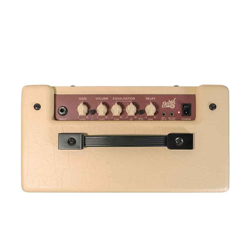 Amplificatore per chitarra elettrica. 15w con 2 altoparlanti 3', 2 canali selezionabili, i controlli di guadagno e di tono, ISF, digital TAPE ECHO, MP3 in ingresso e uscita emulata.
