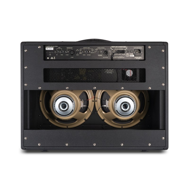 Il combo St. James 100 è dotato di un carico reattivo integrato e della tecnologia CabRig basata su IR, ideale per ottenere toni professionali dal vivo e in registrazione. Inoltre, include un loop effetti commutabile (in serie o in parallelo) e un Boost solista regolabile tra +2 e +6 dB, controllato tramite l'interruttore a pedale a 6 canali incluso.