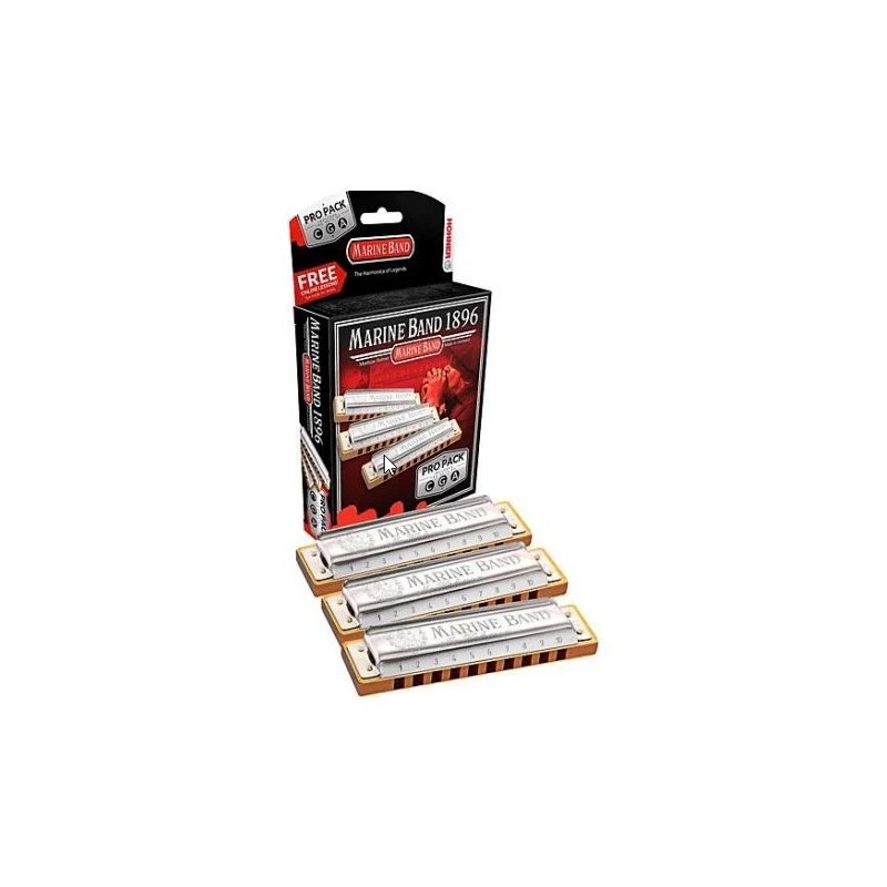 Confezzione Marine Band Pro Pack in C, G, A. Armonica diatonica di 20 voci. La piú antica e la piú usata armonica diatonica della storia, la sua prima realizzazione risale all'anno 1896. Corpo in legno, custodia in...