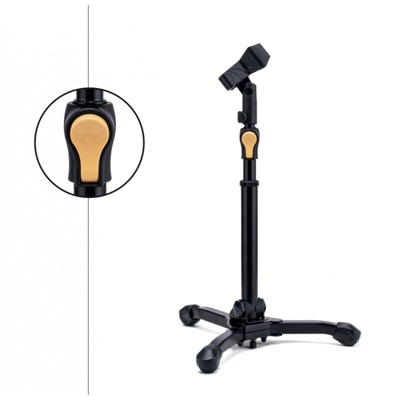 HCMS-300B+ Asta Microfonica Regolazione Altezza EZ Grip Regolatore di Inclinazione Quik-N-EZ Clip Quik-N-EZ Treppiede (transformer) Altezza: 33,5 - 43 cm Peso: 1,1 kg Raggio alla Base: 17 cmDimensioni Piegato: