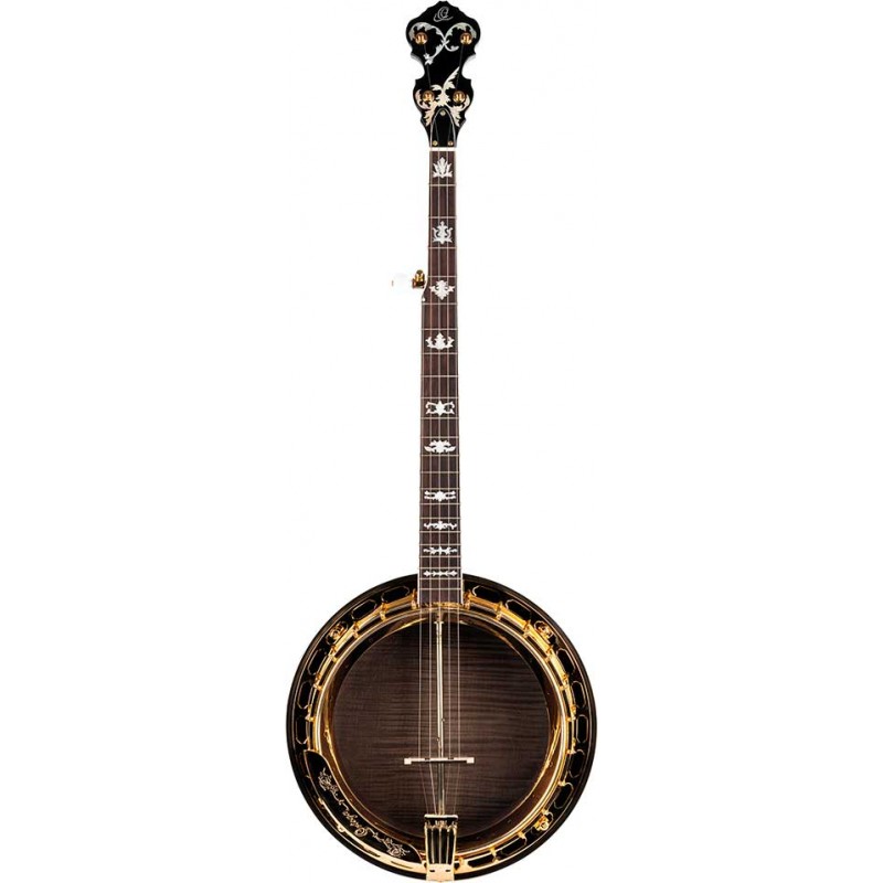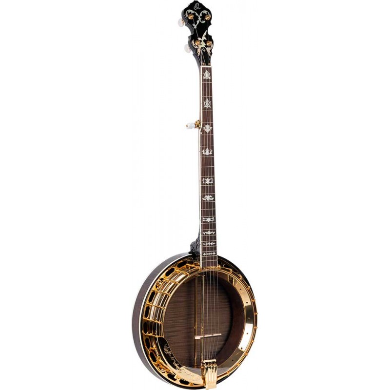 Banjo professionale a 5 corde, con corpo in acero fiammato, manico in acero, hardware dorato e finitura satinata naturale. Include Borsa