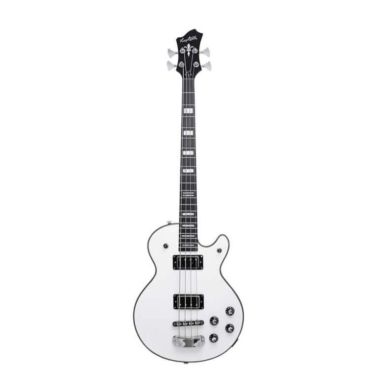 Swede Bass - Bianco Brillante - Top in mogano intagliato e corpo in mogano, manico in mogano, T-O-M a escursione lunga, Sustain Blocks Hagstrom, 2 x Custom 58'B Alnico 5, 2 x Vol, 2 x Tone (Push/Pulls - Coil Split), 1...