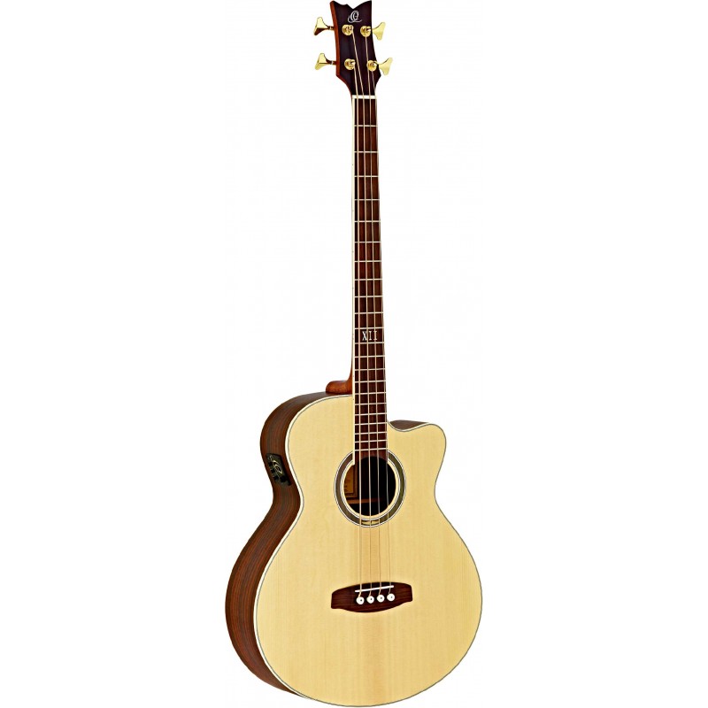 Basso acustico 4 Corde D558-4 a scala media. Top solido in Abete dell'Alaska, corpo in noce, manico in mogano e tastiera in acacia. Monta pre amplificatore Ortega MagusPro Bass. Finitura naturale
