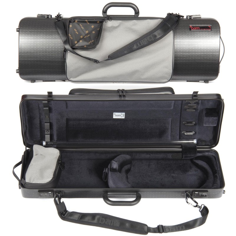 '2011XLLB CUSTODIA HIGHTECH OBLONG PER VIOLINO CON POCKET - LAZURE BLACKPeso: 2, 4 kgDimensioni Interne: Lunghezza totale: 61 cm, Lunghezza del corpo: 38 cm, Attacco superiore: 22 cm, Attacco inferiore: 22 cmDimensioni Esterne: 77x27x16 cmCaratteristiche Interne: Sospensione totale dello strumento su cuscini di schiuma iniettata, Tasca interna removibile per accessori 4 porta archetto, Cinghia per una spalliera in stile KunCaratteristiche Esterne: Calotte realizzate con la tecnica Bam Hightech: una struttura a triplo strato realizzata con materiali ad alte prestazioni (ABS, schiuma Airex, un altro tipo di ABS), Protezione eccezionale e Peso ultraleggero, 2 comode cinghie per zaino antiscivolo in neoprene con ganci a vite di sicurezza, Manico laterale, subway handle, 2 chiusure a combinazione, Chiusura ermetica maschio/femmina, Toppe in gomma antiscivolo e antiusura sulla calotta esterna inferiore, Tasca esterna per musica formato A4'