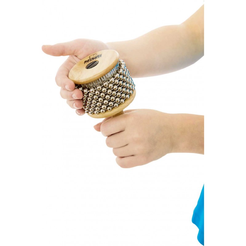Le cabasas Nino sono composte da un cilindro in legno coperto da una placca metallica ondulata, circondata a sua volta da una rete di perline in metallo. Impugnando il manico con una mano e sfregando le perline con...