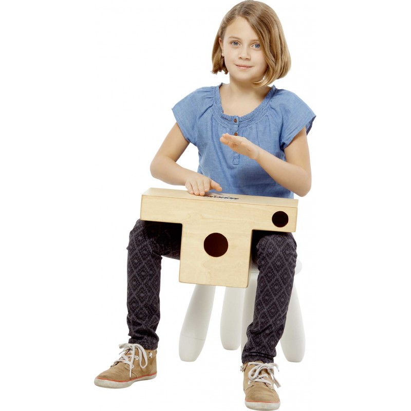 'Questo cajón a forma di ''T'' farà la gioia di ogni musicista grazie alla facilità con cui è possibile produrre tutti i suoni. 15’’ di larghezza x 8’’ di altezza x 7 ½” di profondità. Finitura color legno.'