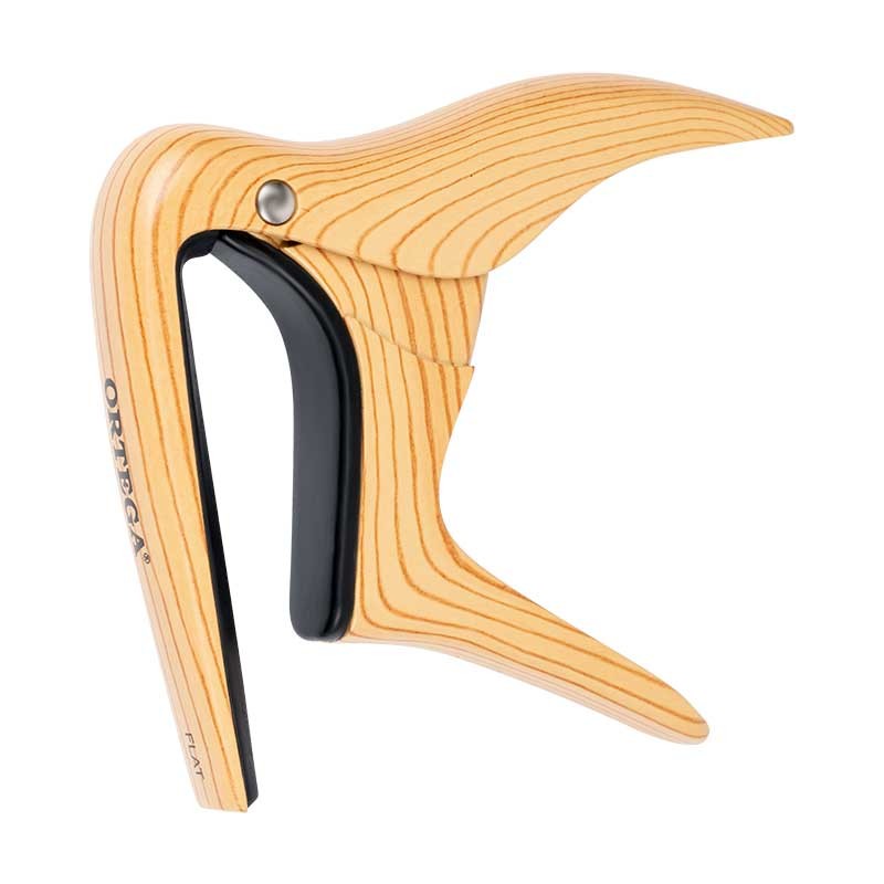OCAPO-MAD Capotasto realizzato in lega di alluminio e design in stile acero. Questa finitura simil legno si abbina particolarmente bene con le chitarre in finitura naturale. Compatibile con tastiere piatte (chitarre...