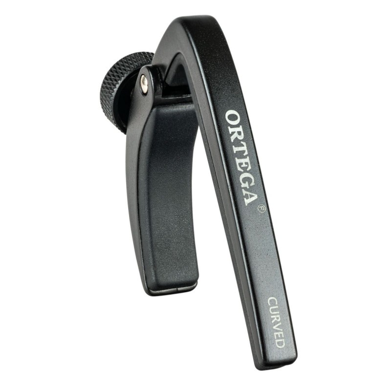 Capotasto curvo ORTEGA Pro Series - Nero. Nessun ronzio o stonatura. Il capotasto Ortega Pro, ultraleggero e compatto, presenta un design sottile che non disturba durante lesecuzione. La sua manopola di precisione...