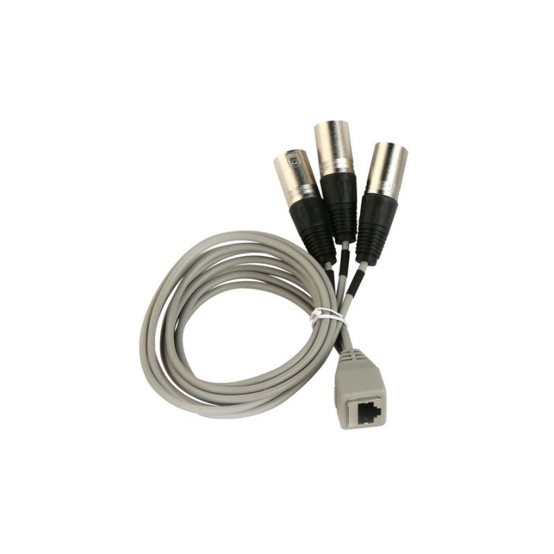 Accessorio cavo progettato per il microfono da soffitto M3. Categoria 7, con connettori RJ45. Cavo breakout composto da un connettore RJ45 femmina a 3 connettori XLR maschio.