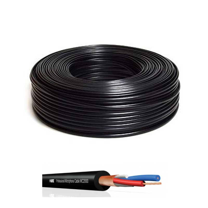 Cavo microfonico professionale in PVC ad alta flessibilit con conduttore in rame nudo Densit 50gr/m Diametro 6,5mm Rotolo da 100 metri