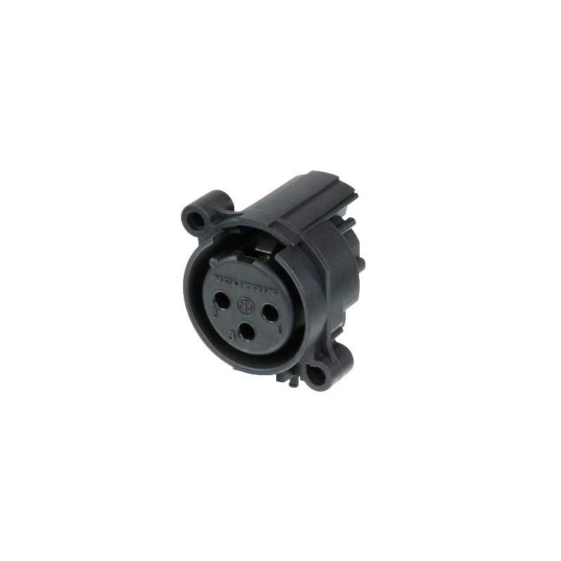Connettore XLR femmina a 3 pin. Serie A. Colore: nero, contatti placcati oro. Montaggio orizzontale su scheda. Corpo rotondo in plastica a basso costo. Nessun collegamento a terra. Prese XLR più piccole, maggiore...