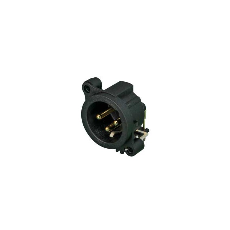 Connettore XLR femmina a 3 poli, messa a terra: contatto di terra separato per l'alloggiamento del connettore e il pannello frontale, montaggio orizzontale su PCB.Connettore da pannello XLR per il montaggio su PCB con...