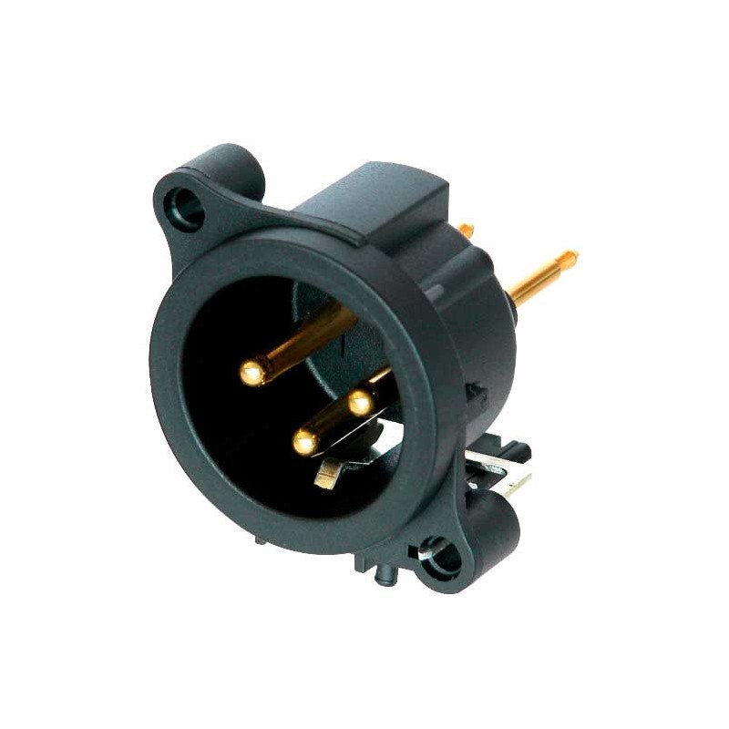 Presa XLR maschio a 3 poli, messa a terra: contatto di terra separato per l'alloggiamento del connettore e il pannello frontale, montaggio verticale su PCB.Connettore da pannello XLR per montaggio su PCB con corpo in...