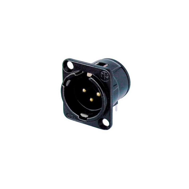 Presa maschio a 3 poli, montaggio orizzontale su PCB, corpo metallico nero, contatti placcati oro.Serie XLR per montaggio a pannello con corpo metallico universale di dimensione D per applicazioni di montaggio su PCB....