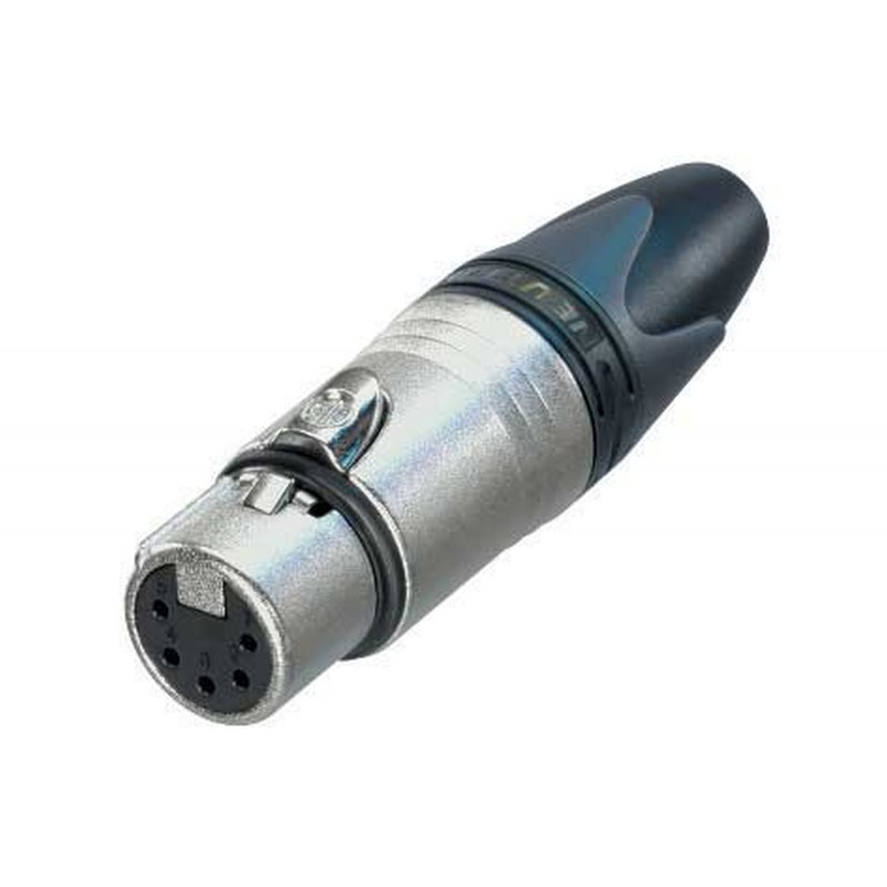 Connettore per antenna XLR maschio a 5 pin ad angolo retto. Serie RX. Colore: nichel, contatti argento. Maggiore affidabilità e facilità di montaggio. Connettore maschio con slot di bloccaggio migliorato senza finestra . Pressacavo in poliuretano per un'elevata protezione contro le sollecitazioni del cavo. Specifiche meccaniche: diametro esterno del cavo 3,5 - 8,0 mm, contatti a saldare, dispositivo di bloccaggio con chiusura a scatto. Materiali: cappuccio in poliuretano, custodia in zinco. Specifiche ambientali: classificazione di infiammabilità UL 94 V-0, standard IEC 61076-2-103, grado di protezione IP 40, intervallo di temperatura da -30 °C a +80 °C.