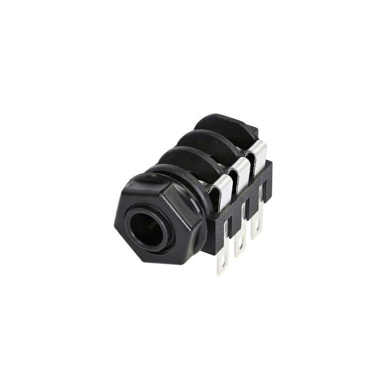 Connettore stereo da 1/4 , senza interruttore, con filettatura completa sul lato anteriore e terminali a saldare standard, incluso dado di montaggio.