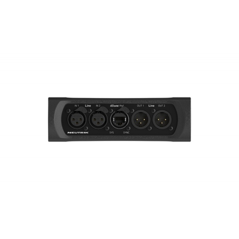 Interfaz de E/S de línea a DANTE® de 2 Entradas y 2 Salidas. Conecta el equipo de audio analógico a una red Dante®. Alimenta amplificadores, altavoces o mesas de mezcla que no estén listos para Dante® con señales de...