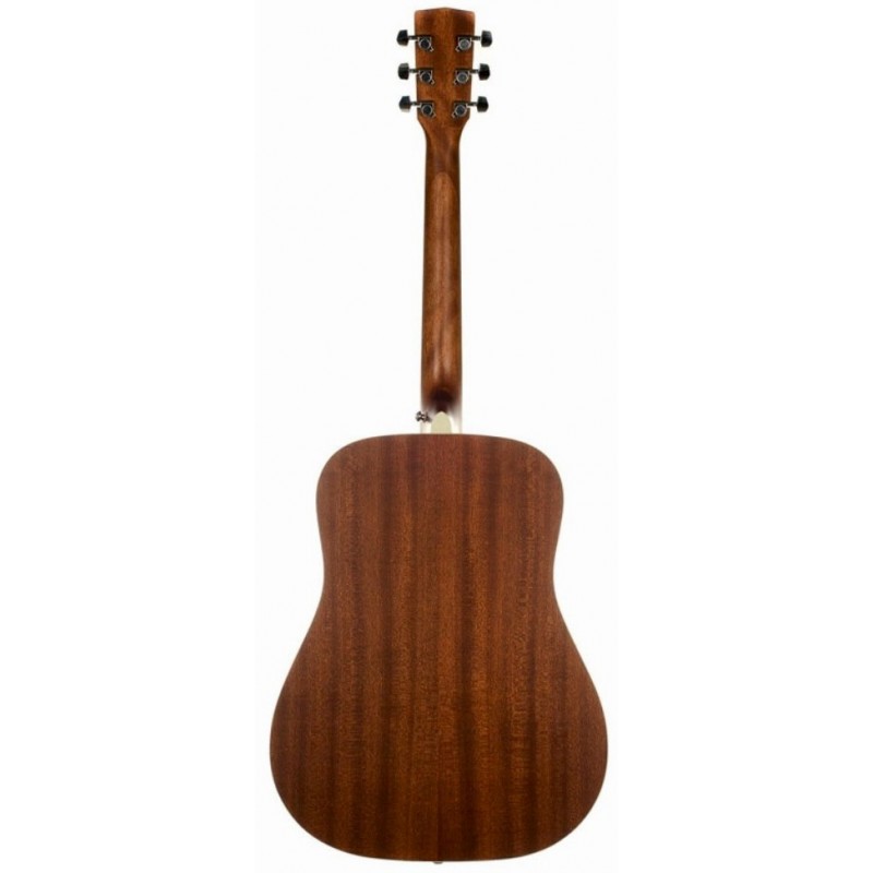 Chitarra acustica tipo Dreadnought. Tavola armonica in abete massello. Fasce, fondo e manico in mogano. Tastiera e ponte in palissandro. 20 tasti. Scala 25,3. Finitura Open Pore.