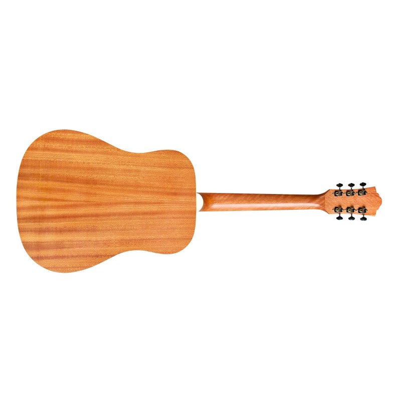 la Guild D240E Mancina è costruita con top in abete Sitka rosso massello, fasce in mogano e fondo in mogano arcuato (Arched), questa full-body dreadnought ha un suono potente, bassi generosi e acuti presenti come nella migliore tradizione folk Americana. Il caratteristico design Guild dal fondo arcuato offre grande volume proiezione sonora, sustain. la chitarra ha una scala di 648 mm, il manico è in mogano (Profilo C) La D-240E è amplificata con l'elettronica Fishman AP-1 electronics appositamente progettata per Guild, tastiera e ponte sono in pau ferro, il nut (43mm) e il traversino in osso. La rosetta è in madreperla, il battipenna in stile d'epoca in celluloide tartarugata, la finitura è poliuretanica satinata natural .
