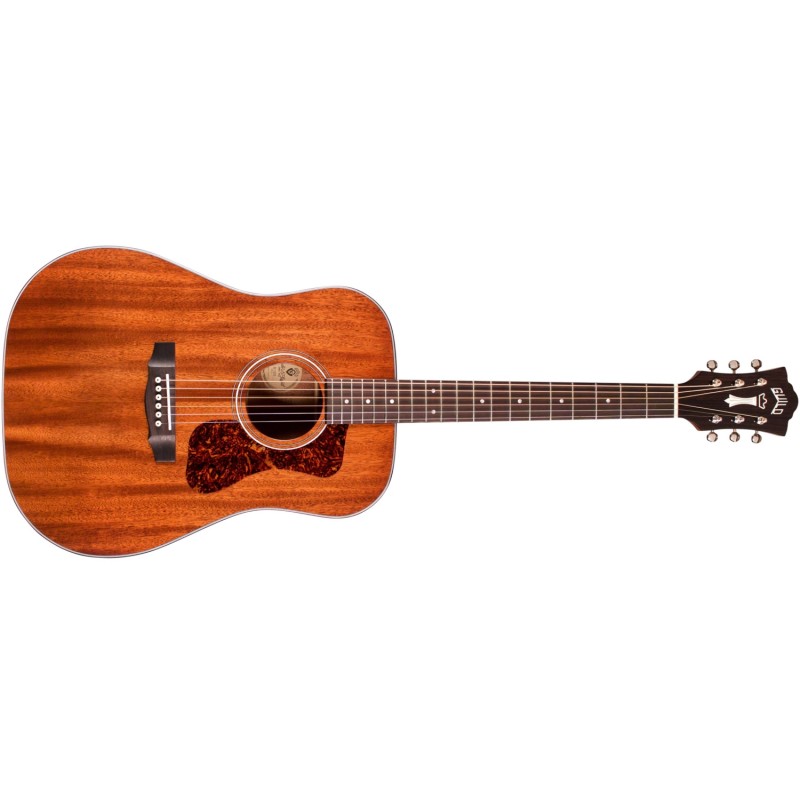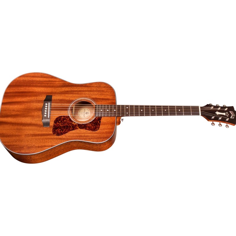 'La potenza sonora di questa Guild dreadnought offre al chitarrista uno strumento che ricorda le vecchie Dreadnought di un tempo. La chitarra è costruita con top, fondo e fasce in mogano africano massello con incatenatura in Abete Sitka, la tastiera e il ponte in palissandro, il manico è in mogano con Profilo C. La D-120 presenta nut (capotasto) e traversino in osso, la rosetta è in madreperla . La chitarra ha una larghezza del nut di 1 3/4'' (44,5mm) come le vecchie Dreadnought , l'iconica paletta Chesterfield, emblema delle Guild dei '60 regala a questo strumento un fascino unico ha il logo in madreperla, il battipenna in stile d'epoca in celluloide tartarugata, le meccaniche aperte stile Vintage completano la dotazione. La nuova custodia Guild leggera in polyfoam è in dotazione . La finitura è Natural Gloss ( Lucida) poliuretanica.'