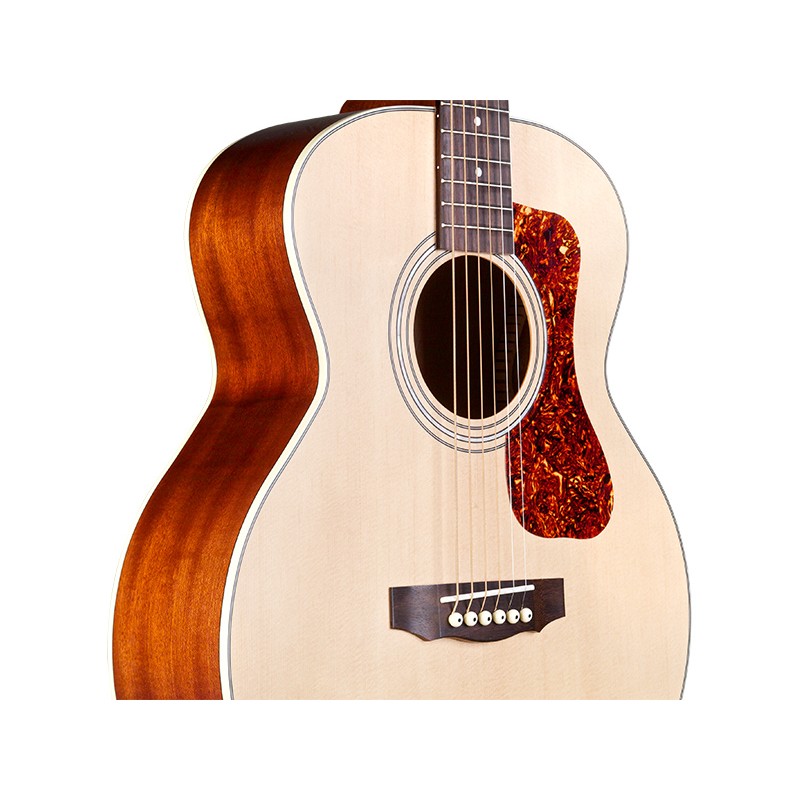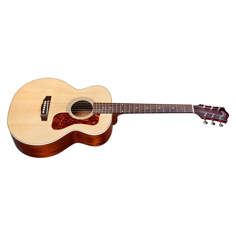 La famosa serie Jumbo Juinior di Guild offre uno strumento facile da portare a casa, in studio o sul palco, il design compatto della Jumbo Junior ti permette di avere una Guild al tuo fianco in ogni momento. Divertente e con grande suonabilità, il suo tono caldo e il sorprendente volume ti riporteranno alla mente molti ricordi, canzoni cantate in gruppo in jam session nei weekend. la costruzione di questo strumento comprende il Top in abete rosso Sitka massello, fasce fondo in mogano ( con il fondo arcuato) il manico è in mogano con Profilo C con finitura satinata, la tastiera e il ponte sono in Pau Ferro, il nut in osso come per il traversino (capotasto) è da 43 mm , la scala di 603 mm, il truss road a doppia azione come per le chitarre di fascia superiore come le meccaniche Guild aperte con il ratio da 18:1 completano la dotazione.La serie Jumbo Junior offre il classico suono Guild anche da amplificata grazie al sistema di amplificazione AP-1 Guild-Fishman, la Jumbo junior è pronta ad accompagnarti dappertutto, anche in performance live.La finitura è poliuretanica satinata Natural.