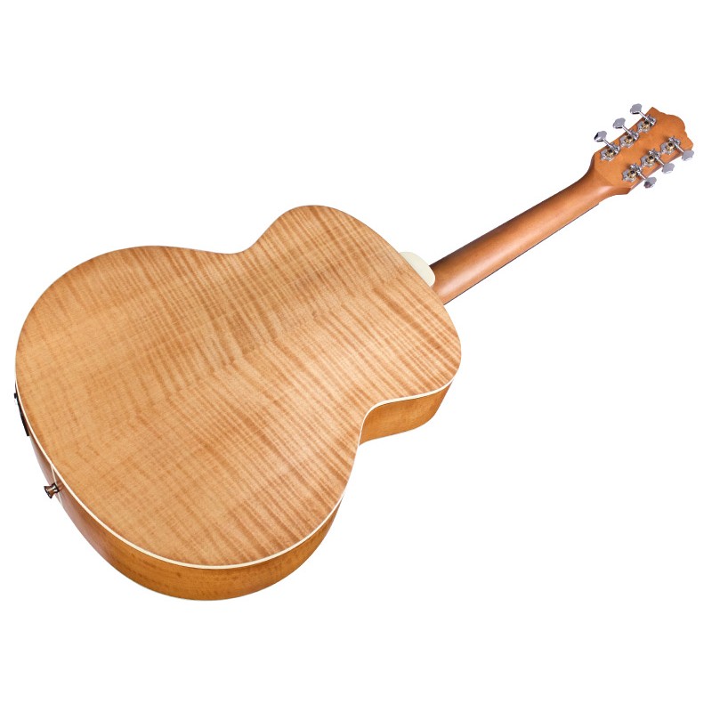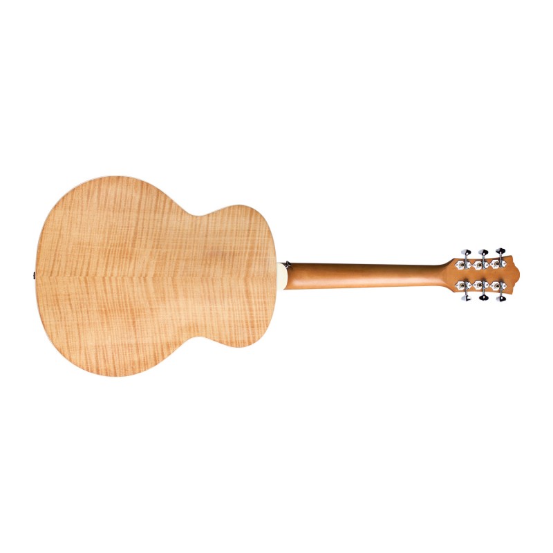 Guild rinnova la sua classica Jumbo-Junior, in questa versione il fondo e le fasce sono in acero fiammato con una finitura poliuretanica satinata antique blonde. A casa, in studio o sul palco, il design compatto della Jumbo Junior ti permette di avere una Guild al tuo fianco in ogni momento. Divertente e con grande suonabilità il suo tono frizzante ( grazie all'utilizzo dell'acero) la rende ottima per lo strumming. Con il suo sorprendente volume ti riporteranno alla mente molti ricordi, canzoni cantate in gruppo e jam session nei weekend. Il top è in abete rosso Sitka massello, fondo arcuato e fasce in acero fiammato, manico in acero con Profilo C con finitura satinata, la tastiera e ponte sono in Pau Ferro, il nut (capotasto) in osso come per il traversino è da 43 mm, la scala dello strumento è da 603 mm. Il truss road a doppia e le meccaniche aperte Guild con ratio 18:1 azione come per le chitarre di fascia superiore e le meccaniche Guild aperte con ratio 18:1 completano la dotazione. Corredata dal pickup AP-1 Guild-Fishman, la Jumbo junior è pronta ad accompagnarti dappertutto, anche in performance live.