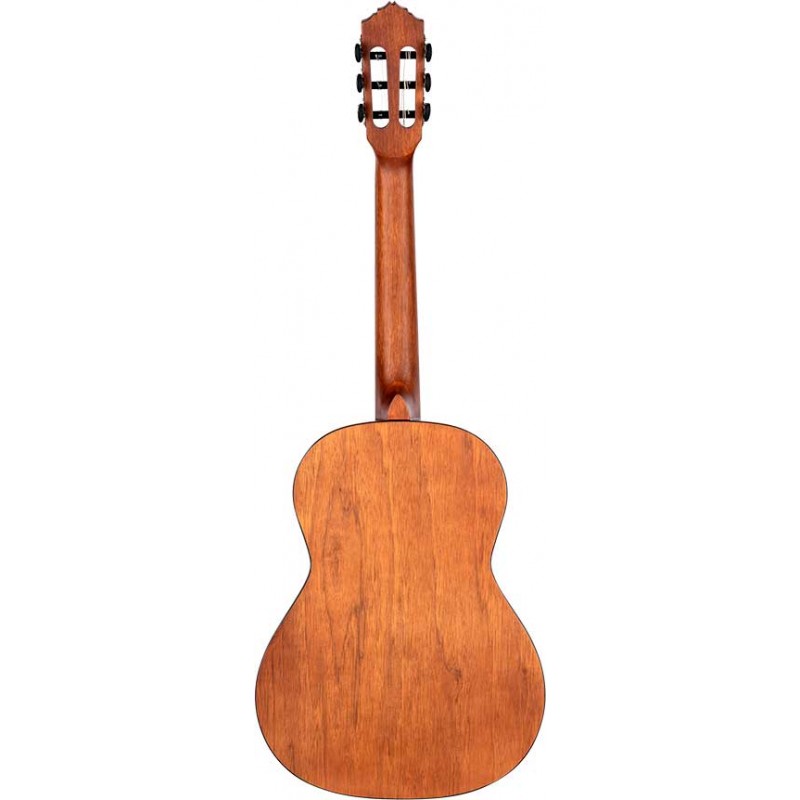 RSTC5M-3/4 Chitarra da studente 3/4. Top in cedro con finitura satinata opaca. Fondo e fasce in catalpa. Rosetta classica. Binding in ABS. Legno di Coaba. Tastiera e ponte in noce.