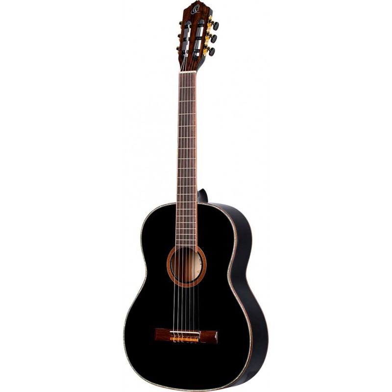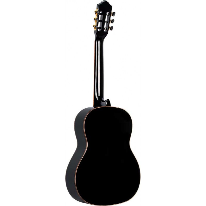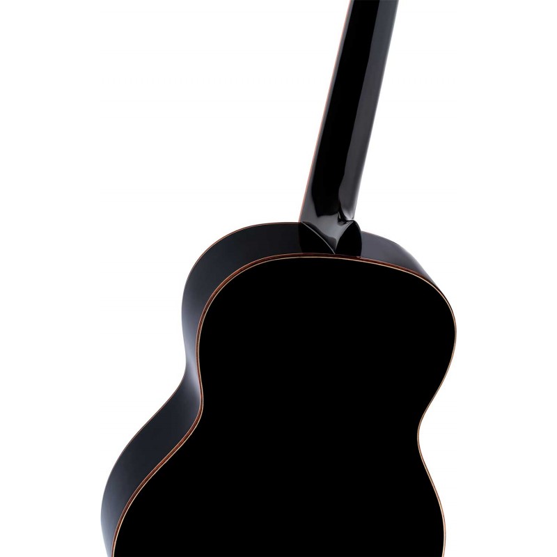 Chitarra Classica serie Family. Top in abete laminato, fondo, fasce e manico in mogano. Anima regolabile Manico sottile, più stretto. Tastiera Sonokelin Finitura nera. Custodia deluxe inclusa.