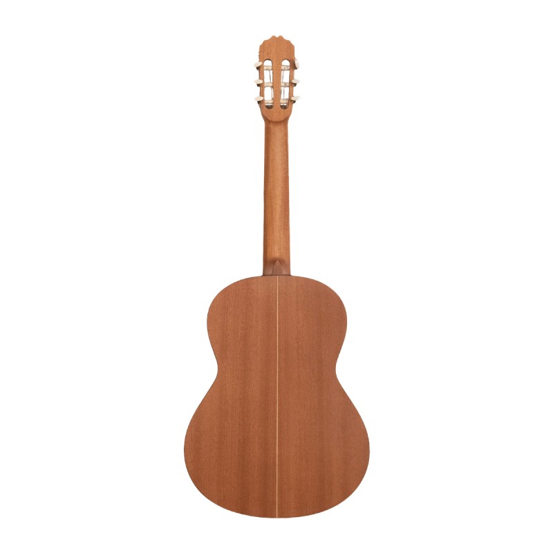 Chitarra classica. Top solido in cedro. Fasce e fondo in mogano. Manico in mogano. Tastiera in palissandro indiano. Capotasto in osso 52mm. Meccaniche placcate in nickel. Binding in palissandro indiano. Scala 650mm....