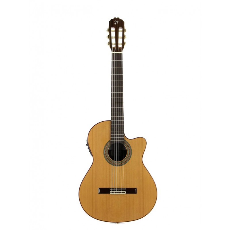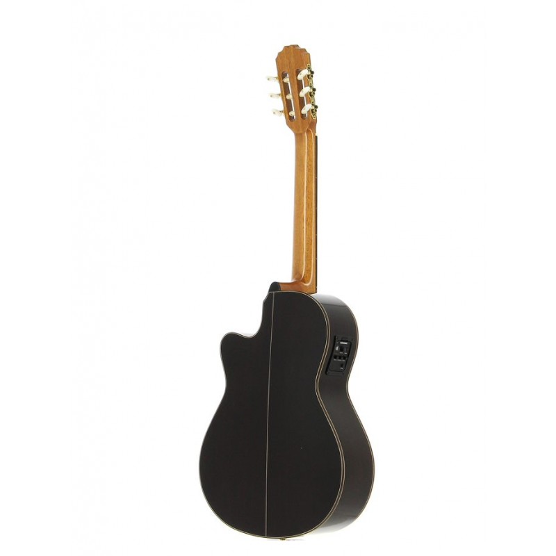 Chitarra classica cutaway elettrificata. Top solido in cedro. Fasce e fondo in palissandro indiano. Manico in mogano. Tastiera in palissandro indiano. Capotasto in osso. Meccaniche dorata.