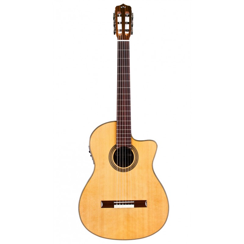 'La 12 Natural è la nostra chitarra crossover di livello intermedio, caratterizzata da un manico confortevole e sottile in stile steel-string (larghezza del capotasto di 48 mm) con tastiera con raggio di 16''. È possibile scegliere tra un top in cedro canadese massiccio abbinato a fondo e fasce in mogano. Come suggerisce il nome, la 12 Natural ha 12 tasti sul corpo, permettendo al ponte di stare più indietro sulla tavola armonica, dove la risonanza è ottimizzata per un suono ampio con un lungo sustain. Rifiniture accurate, come la rosetta in legno intarsiata a mano, il top a 3 strati in acero ed ebano e la finitura poliuretanica lucida, rendono questo modello Fusion bello e pratico. Collegala e suona con il preamplificatore Fishman Presys incorporato.'