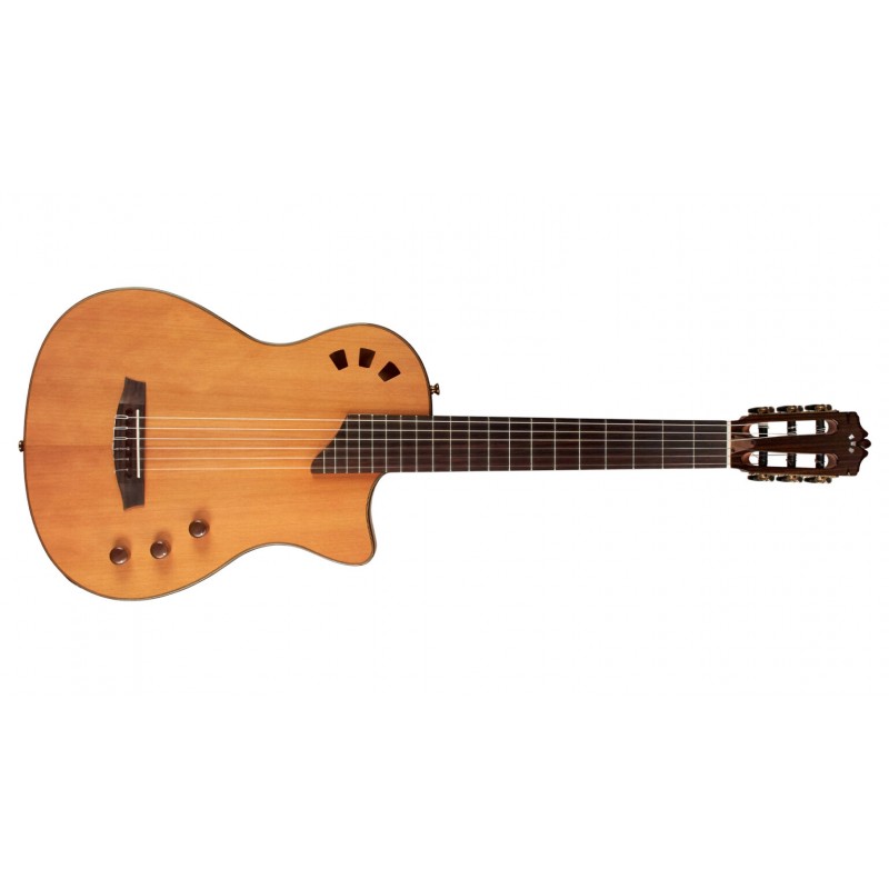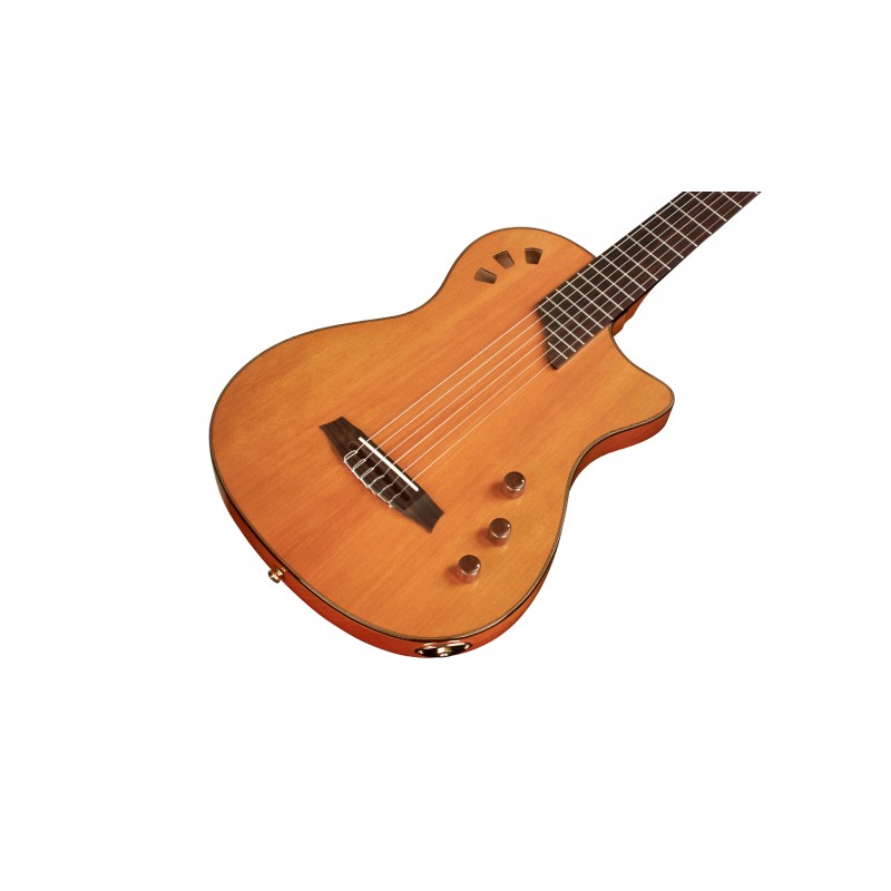 'Creato per offrire la stessa esperienza degli strumenti classici di Córdoba in tutti i contesti, la Stage Traditional amplia la lineup della serie Stage di Córdoba con elementi di design che si ispirano all'eredità classica della chitarra spagnola. Questi elementi comprendono un top in massello di cedro canadese, un legno molto ricercato per il suo suono caldo e la sua risonanza, una larghezza del capotasto di 52 mm e una tastiera piatta in palissandro, che offrono una sensazione familiare e confortevole per i musicisti provenienti dagli ambienti della chitarra classica, flamenco e spagnola. Con 12 tasti fino al corpo e un confortevole manico con profilo a ''C'', la Stage Traditional incarna i design classici delle chitarre spagnole quando abbinato al corpo in mogano a camera singola da 1,5 pollici, adatto al palco. Al cuore della chitarra c'è il rivoluzionario sistema di pickup Stage, dotato di manopole di facile accesso per volume, EQ e Body Blend. Ciò consente ai musicisti di regolare il proprio suono acustico preferito, ottenendo un suono di corda in nylon incredibilmente risonante e reattivo in una chitarra elettrica moderna e pronta per il palco. Include una custodia in nylon riciclato realizzata con microplastiche e reti da pesca dismesse per ridurre l'impatto globale.'