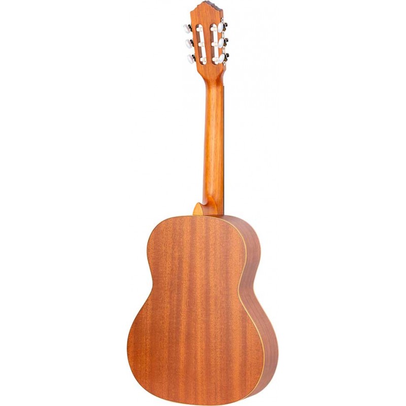 Chitarra classica per MANCINI Family Series 1/2. Top in abete laminato, fasce e fondo in caoba laminato. Finitura satinata. Borsa inclusa.