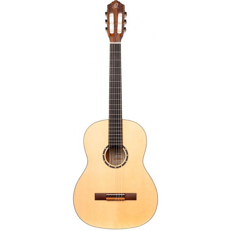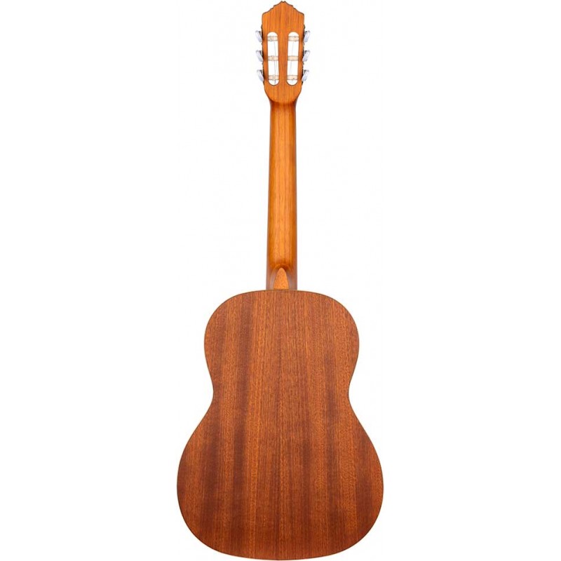 Chitarra classica per MANCINI Family Series 4/4. Manico stretto, Top in abete laminato, fasce e fondo in caoba laminato. Finitura satinata. Borsa inclusa.