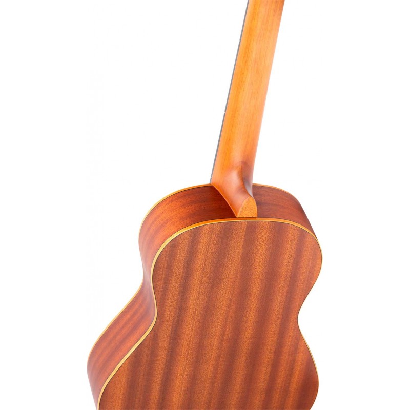 Chitarra classica per MANCINI Family Series 1/2. Top in cedro laminato, fasce e fondo in caoba laminato. Finitura satinata. Borsa inclusa.