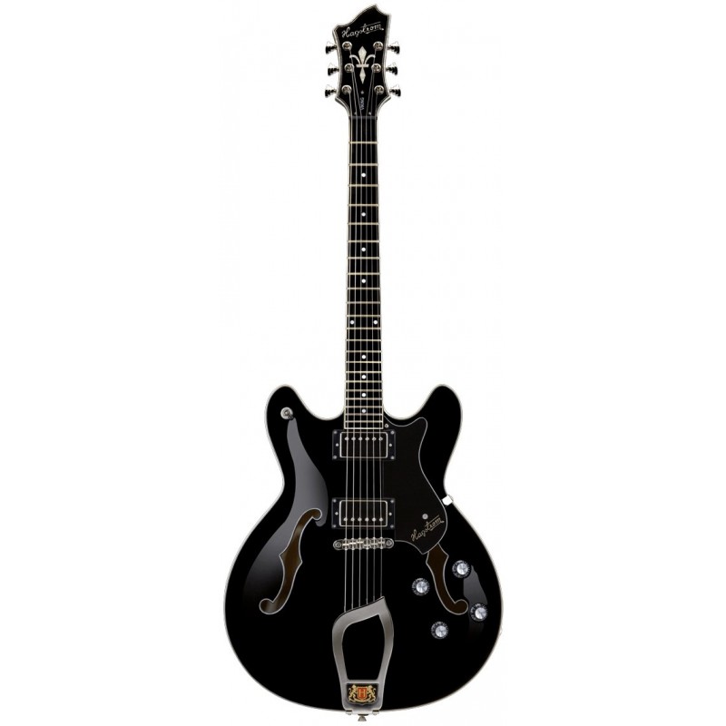 Viking MODELLO PER MANCINI Nero Brillante, corpo semi-hollow in ply-maple sagomato, set-neck in acero, ponte T-O-M a escursione lunga, Hagstrom Trapeeze, 2 x HJ50 Alnico 5, 2 x Vol RC-Circuit, 2 x Tone, 3-Way Pick-up...