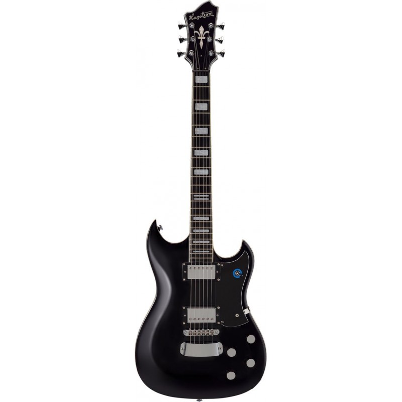 Pat Smear Signature Nera, mogano / top in acero intagliato, mogano - Manico set neck, T-O-M a escursione lunga, Blocco di Sustain Hagstrom, 2 x Custom 58, 2 x Vol RC-Circuit, 2 x Tone, Lunghezza scala 24.75,...