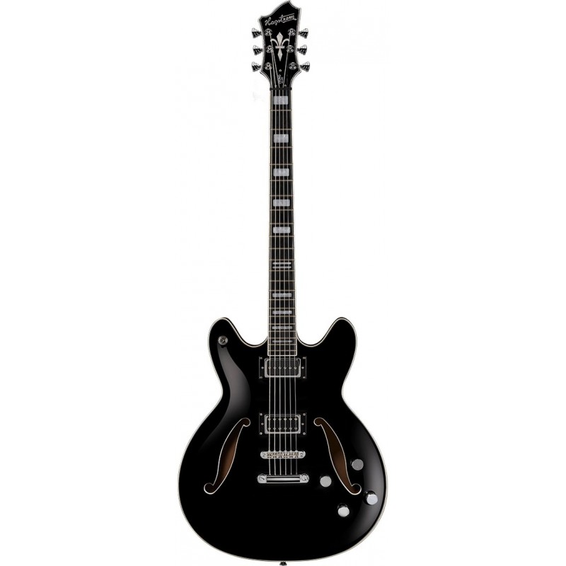 Viking Baritone DLX - Nero Brillante, corpo semi-hollow in Ply-Maple sagomato, Set-Neck in acero, T-O-M a escursione lunga, Hagstrom Trapeeze, 1 x P-Urified (P-90) Alnico 5, 1 x Custom 58'C Alnico 5, 2 x Vol...