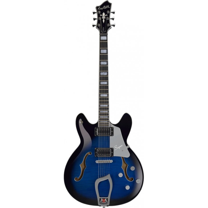 Super Viking - Dark Baltic Sea, corpo semi-hollow in acero fiammato sagomato, set-neck in acero, T-O-M a escursione lunga, Hagstrom Trapeeze, 2 x HJ50 Alnico 5, 2 x Vol RC-Circuit, 2 x Tone (Push/Pulls - Coil Split),...