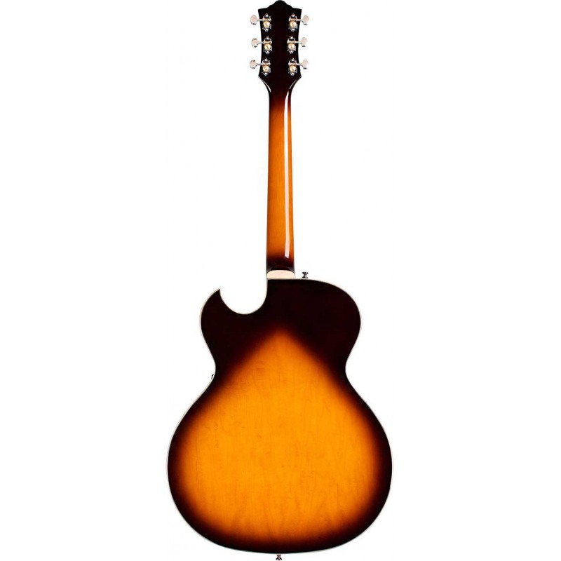 Basata sulle classiche single cut Starfire II e III, la Starfire I SC presenta un corpo spesso 2“ come per le migliori semi-Hollow Body , il blocco al ponte ne aumenta la stabilità e la risonanza, il top, fondo (arcuato) e fasce sono in acero come per il manico con nut da 43 mm,.la tastiera è in palissandro indiano.La Starfire I SC offre la ariosa tonalità di una semi-hollow body, con overtones brillanti e bassi pronunciati. La scala 24 3/4” (629 mm) e il moderno manico sottile ad “U” garantiscono un ottima suonabilità , le meccaniche premium della Guild hanno un ratio 18:1 e il ponte Tune-o-matic con attaccacorde assicurano una facile accordatura e una perfetta tenuta dell'intonzaione. Un'iniezione di suono vintage è garantita dagli humbucker Guild HB-2 Alnico II, il push-pull permette di splittare le bobbine dei pickup a seconda della vostra esigenze . I binding e il purfling sono in ABS, Finitura poliuretanica lucida Antique Sunburst.