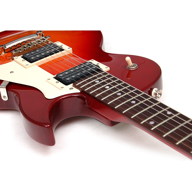 'Chitarra elettrica dal design classico con cutaway. Corpo in mogano. Manico bolton in acero canadese. Tastiera in palissandro. 22 tasti. Scala 24,75''. Pickup Powersound PSLP1F e PSLP1R. Configurazione HH. Meccaniche...