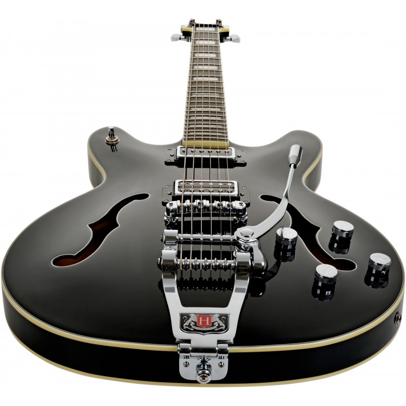 Immaginate l'unione di due potenze musicali, ognuna celebre a sé, stante. La Hagstrom Viking DLX, nota per la sua scala estesa e la sua ricca tavolozza tonale, e la Hagstrom Tremar, rinomata per il suo impeccabile sistema di vibrato. L'aggiunta dell'unità, Tremar trasforma uno strumento già, eccezionale in un concentrato di potenza sonora.