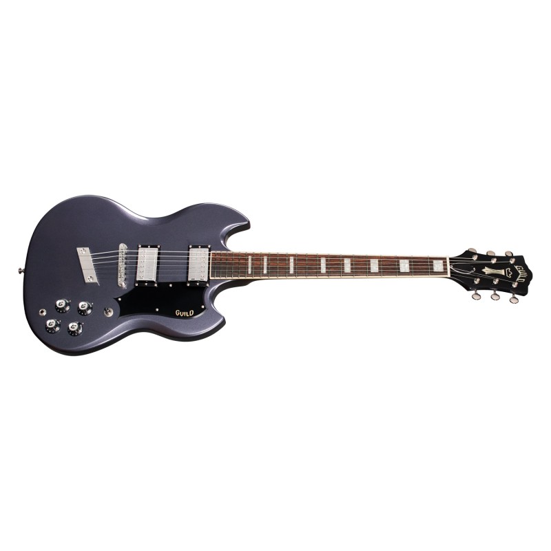 Disponibile in tre diverse opzioni: Cherry Red, Vintage Sunburst e Canyon Dusk. Per coloro che cercano l'aspetto originale degli anni '70, una finitura trasparente Cherry Red sul corpo in mogano non delude mai. Un'opzione Vintage Sunburst porta alcune delle estetiche delle chitarre hollow body di Guild a questa solida chitarra con manico incollato aggiornato, con una sfumatura eseguita a mano che enfatizza il corpo, il manico e la paletta. La finitura metallica Canyon Dusk, una delle finiture più popolari di Guild, si abbina perfettamente all'hardware in nichel e alla tastiera in palissandro.