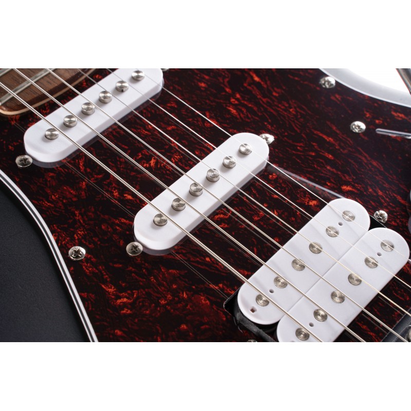 'Caratteristiche Chitarra elettrica Cort G100 OPB: Serie G Modello 100 OPB Costruzione: Elettrica con corpo solido e due cutaway. Manico avvitato al corpo. Scala: 25 1/2'' 648 mm Corpo: Meranti. Manico: Acero, con anima in acciaio regolabile. Elettronica: 3 pickup singoli Powersound EG5W, combinati con selettore a 5 posizioni, 1 regolazione del volume e 2 del tono. Meccaniche: Cromate. Capotasto: Grafite. Ponte: Fisso. Tastiera: Palissandro, con 22 tasti di tipo large 2,7 x 1,3 mm. Raggio della tastiera: 12'' Larghezza della tastiera: 43 mm al 1 tasto, 56 mm al 22 tasto Spessore del manico: 21 mm al 1 tasto, 23 mm al 12 tasto. Segni di posizione: Punto in madreperla acrilica sulla tastiera e punti bianchi sul bordo. Finiture: Rosso, marrone e nero OP.'